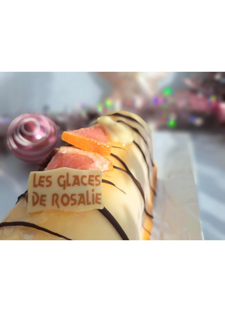 Bûche glacée Sunshine - Crème glacée citron, sorbet mandarine, compotée de pamplemousse, croquant amande